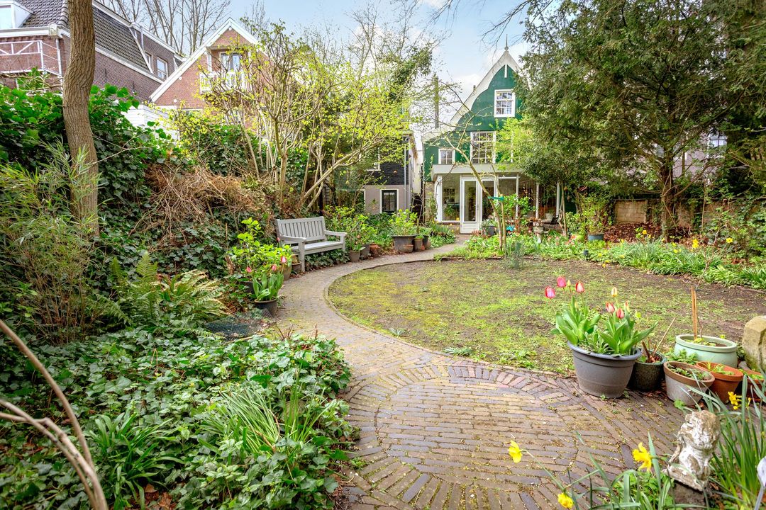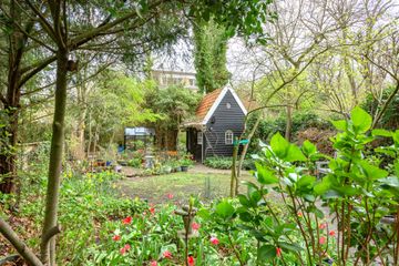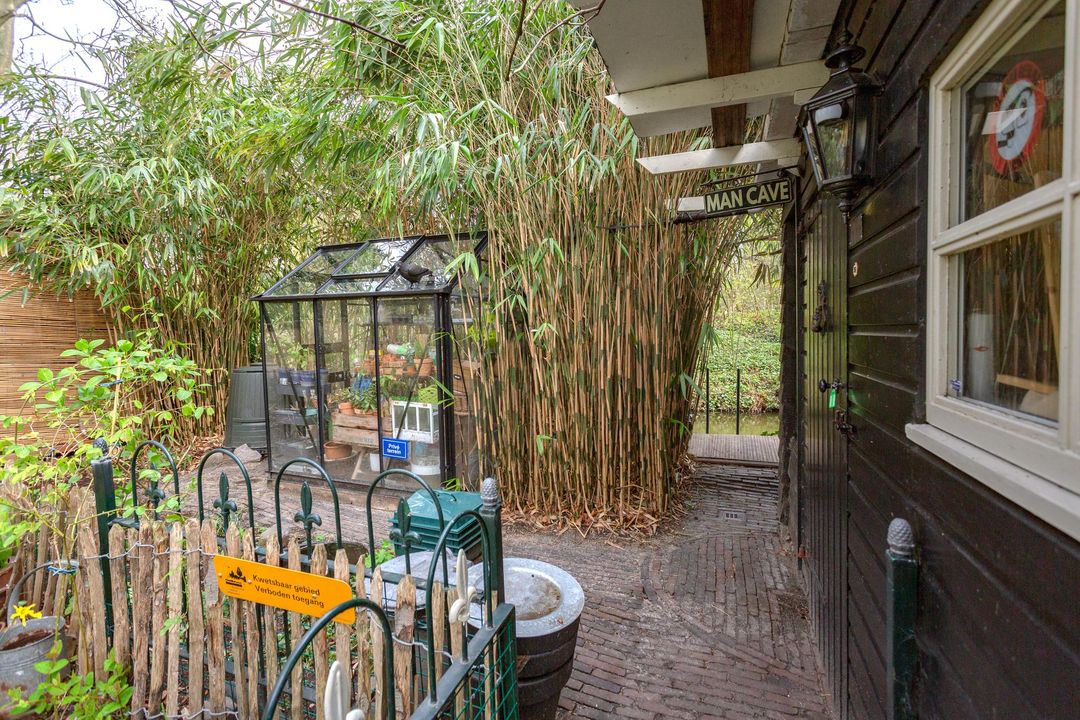 De tuin is gelegen op het oosten en maar liefst circa 22 meter diep en circa 10 meter breed. Een heerlijke plek voor de tuinliefhebber, hier valt veel te ontdekken aan verschillende plantensoorten. Kleine vijvertjes zorgen voor nog meer leven in de tuin en recent is er een fijne kas geplaatst, voor het opkweken van stekjes of het voorzaaien van groenten. Het tuinhuis achterin de tuin is ook voor meerder doeleinden geschikt: wordt het een atelier. een fijne plek voor de kinderen, of een gezellig theehuisje? Aan de voormalige ringvaart vindt u een tweede, romantisch, huisje, direct aan de steiger. Deze vaart staat in open verbinding met het Noordhollandsch kanaal. Ideaal om een kano aan te meren.
