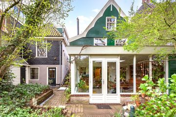 Hier woon je op een echt hele bijzondere plek, onder de rook van het centrum van Amsterdam, maar in het groen van het buitengebied, met eigen aanlegsteiger in het Noordhollandsch Kanaal én prachtige tuinen, voor en achter. Wat is er nu fijner dan voor je huis in je boot te stappen en te genieten van de ruimte en de natuur om je heen? In de achtertuin staat, naast een heel fraai tuinhuis, een kas en diverse fruitbomen. Wij laten dit pittoreske, sfeervolle en goed onderhouden dijkhuis graag aan u zien.