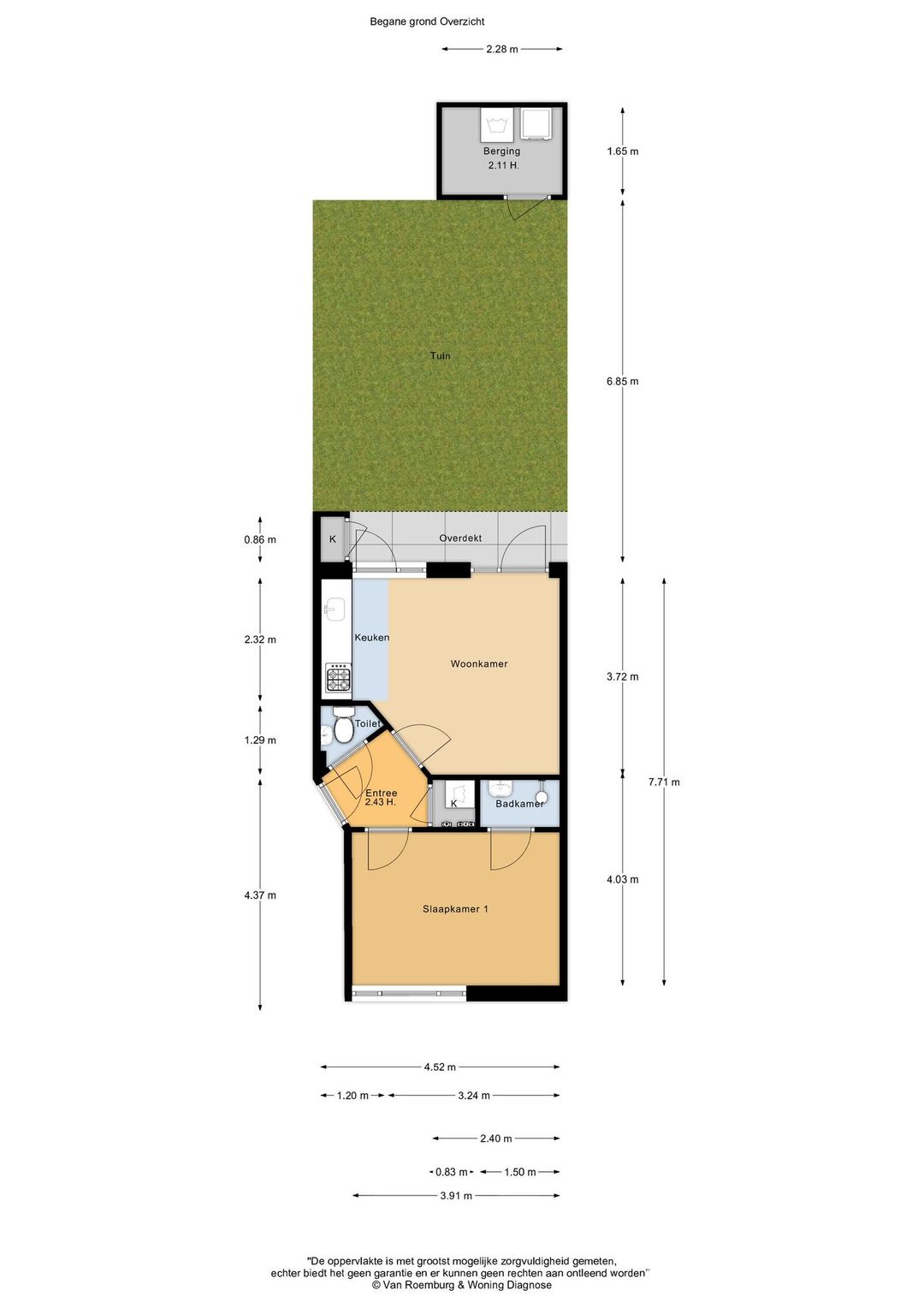 Via de gemeenschappelijke ingang kom je bij de eigen entree op de begane grond. De woonkamer met eethoek en open keuken ligt aan de achterzijde van het huis, met uitzicht op en toegang naar de ruime tuin. Aan de voorzijde van het huis is de ruime slaapkamer gelegen. Een fijne kamer met veel lichtinval. Vanuit de slaapkamer is de badkamer te betreden, welke is voorzien van een wastafel en douche. Het toilet met fonteintje bevindt zich aan de hal. Ook ligt er een kleine bergruimte aan de hal, met aansluiting voor de wasmachine en -droger. De tuin is netjes aangelegd met een combinatie van bestrating en groen. Het tuinhuis biedt veel opbergruimte, ook ideaal voor het stallen van een of meerdere fietsen. Op de tweede verdieping ligt een fijne ruimte die gebruikt kan worden als berging, hobby- of werkkamer.