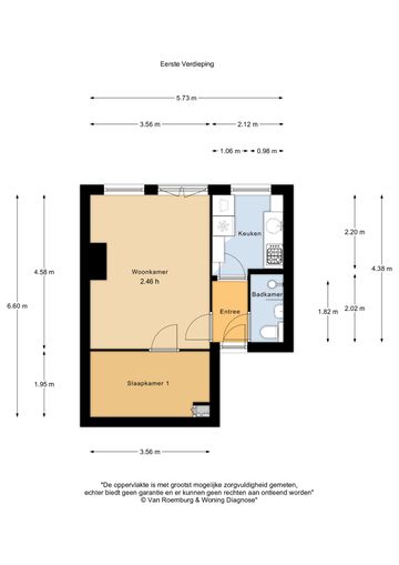 – Woonoppervlak van circa 33 m² en zolderkamer van circa 11 m² (NEN2580 rapport aanwezig);
