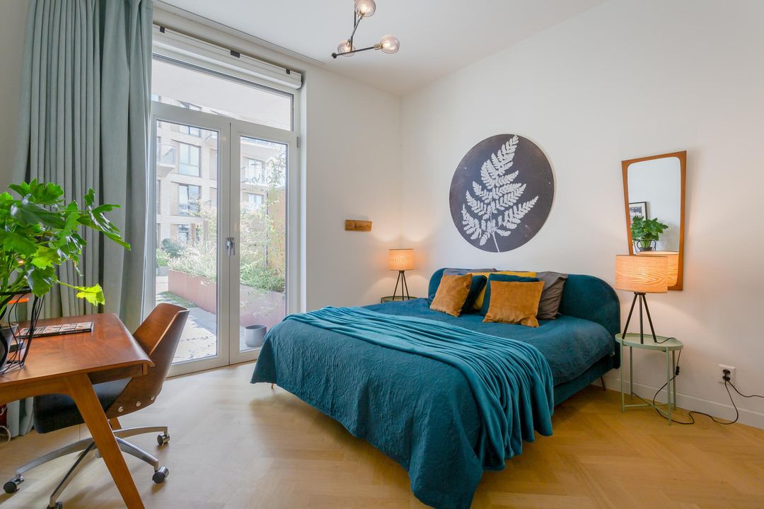 In the most prestigious project of Zeeburgereiland, ‘Heroes Amsterdam’, this beautiful 4-room apartment with a studio and spacious garden is now available. A spacious apartment on the ground floor with a living area of approximately 125 m². The house has a spacious living room with an open kitchen, three bedrooms, a studio, a large bathroom, and a lot of storage space. The well-maintained garden is located in the southeast and has a very nice finish.