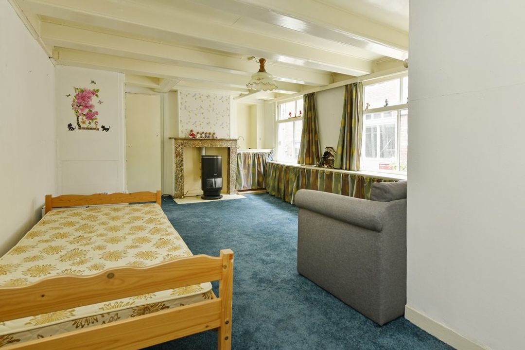 Souterrain, eigen entree aan de Korte Dijkstraat. Een kamer met badkamer en apart toilet en trap naar bel-etage.