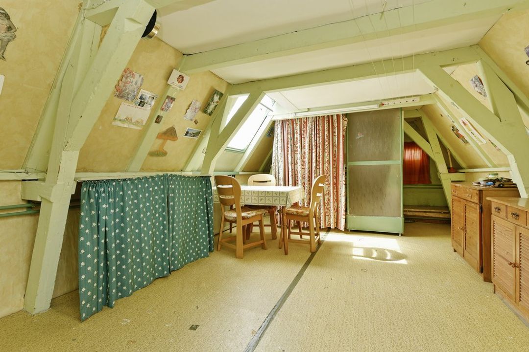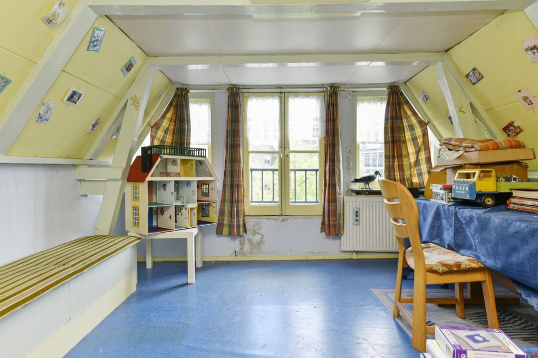 Vierde verdieping, kapverdieping met twee kamers, douche, wasmachine aansluiting en daarboven een vliering met bergruimte.