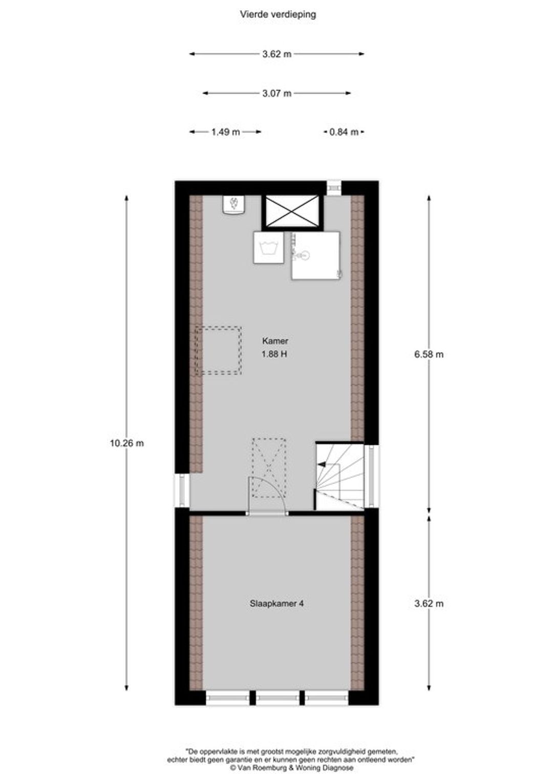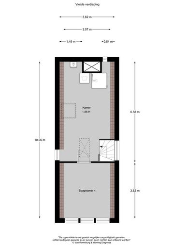 Vierde verdieping: circa 31 m², plafondhoogte circa 1,88 meter;