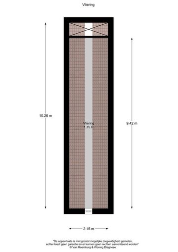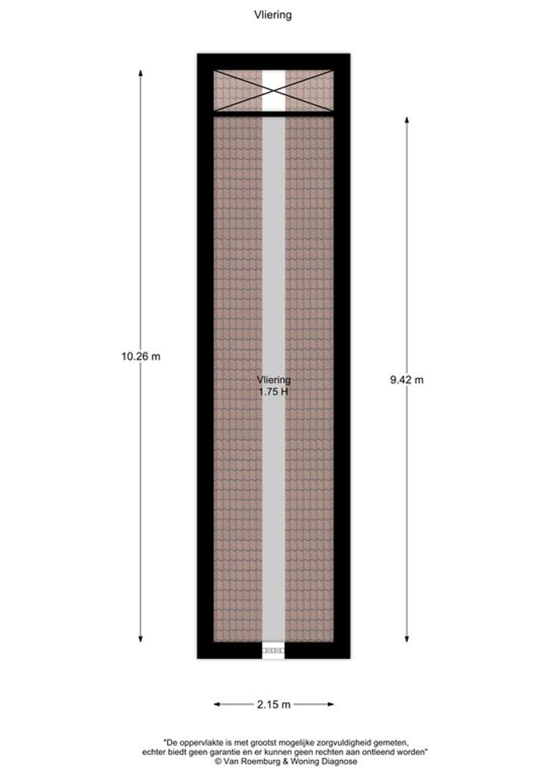 Vliering: circa 4 m², plafondhoogte circa 1,75 meter.