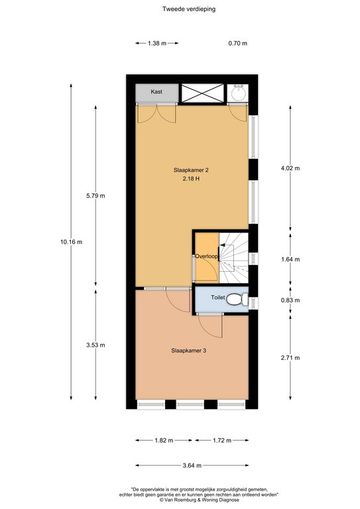 Tweede verdieping, twee kamers en een toilet.