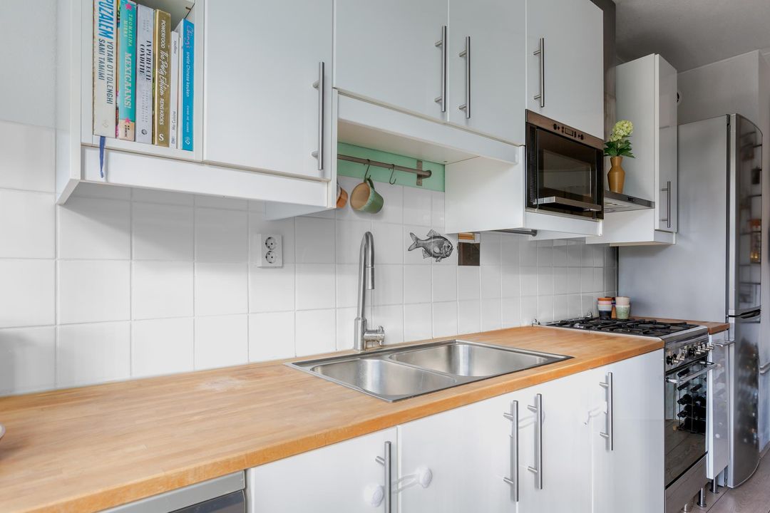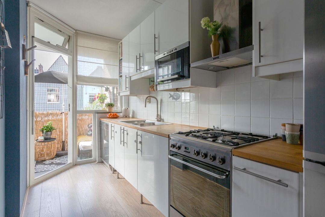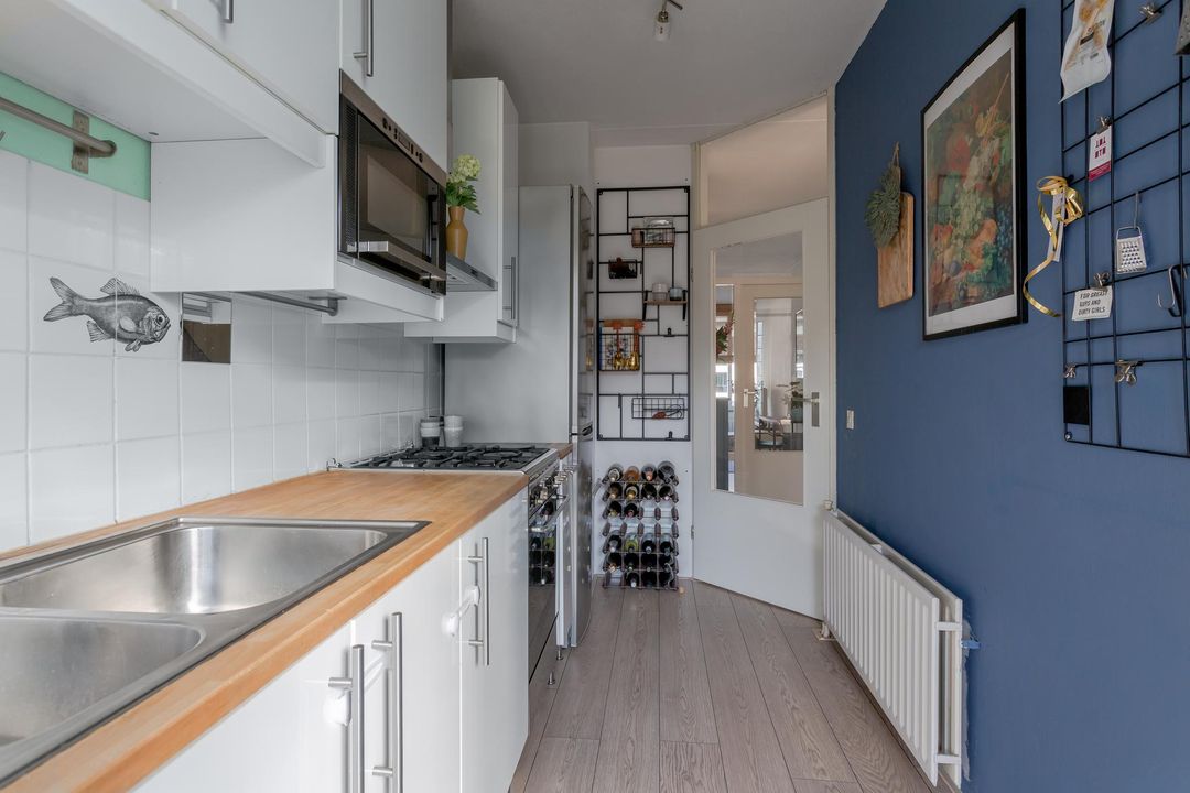 Via het keurige gemeenschappelijk trappenhuis naar de derde verdieping. Binnenkomst in de royale hal, voorzien van garderobe en toegang tot de woonkamer aan de voorzijde. De woonkamer is heerlijk licht en geeft uitzicht op de mooie panden aan de overkant van de straat. Ook is er voldoende ruimte voor een zithoek en een eethoek. De gezellige keuken bevindt zich aan de achterzijde en geeft toegang tot het knusse en zonnige balkon op het zuidwesten. De keuken is voorzien van een gasfornuis, afzuigkap, vaatwasmachine, inbouwmagnetron, losse koel/vriescombinatie, dubbele spoelbak, een houten werkblad en veel kastruimte.