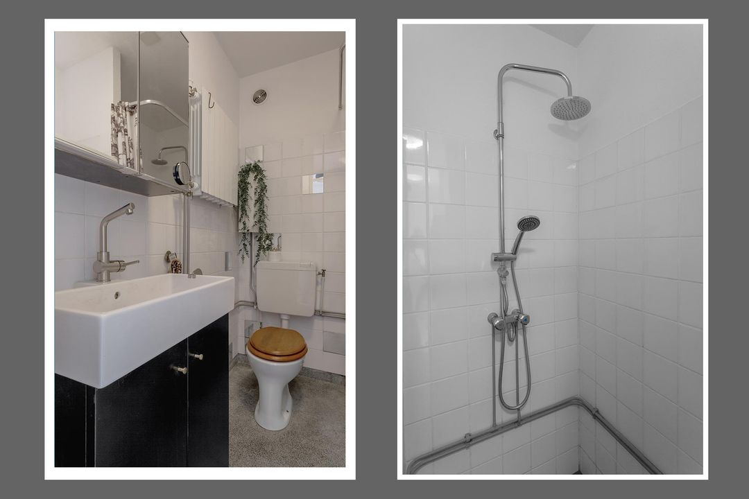 – Badkamer met douche, wastafelmeubel, toilet en wasmachine-aansluiting;