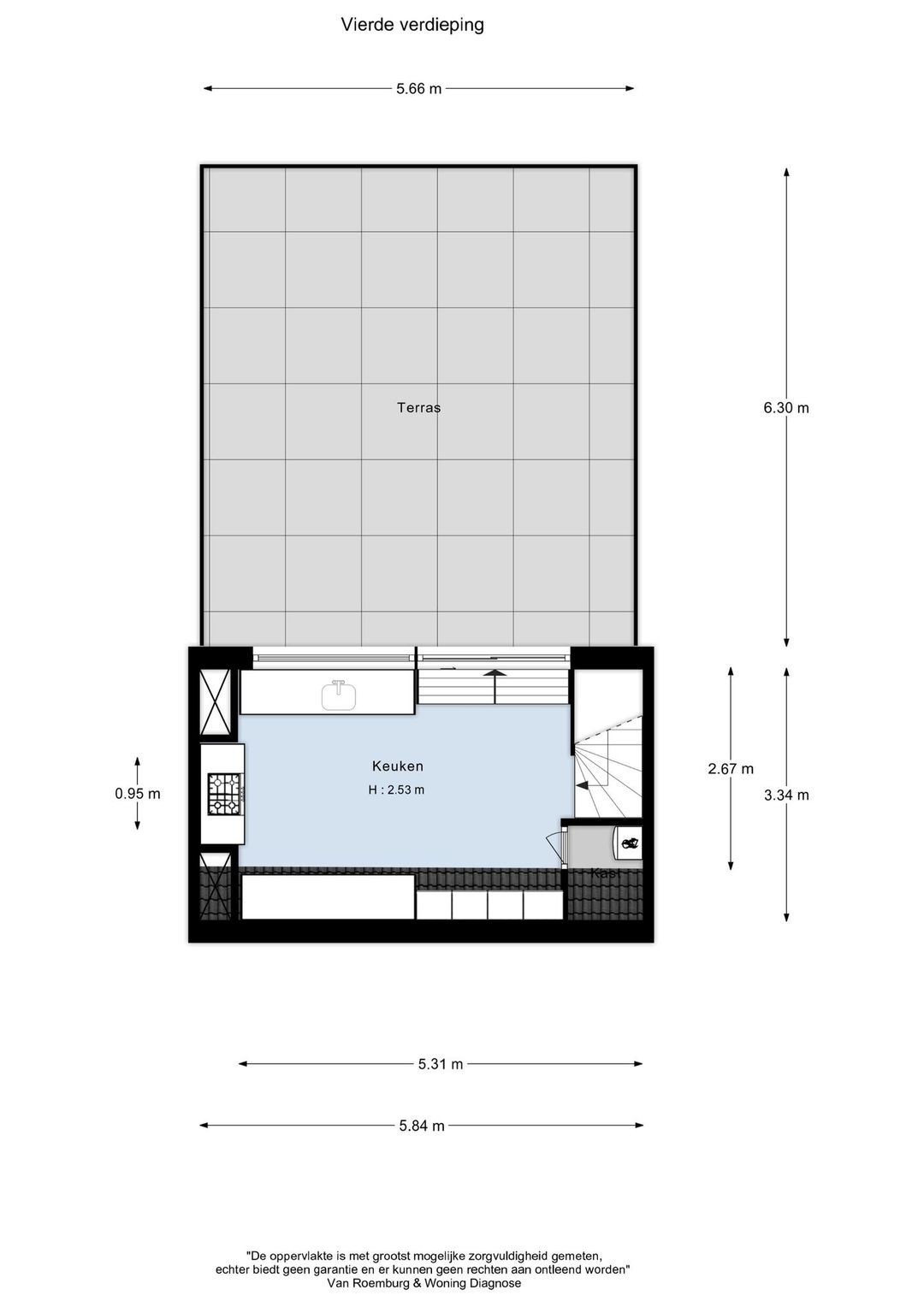 Zodra je de vierde verdieping betreedt valt direct de ruime en moderne keuken op. De keuken is voorzien van een 4-pits kookplaat, oven, vaatwasser, kokend waterkraan en veel opbergruimte. In de open keuken is er ook plek voor een gezellig eetgedeelte, zo heb je een gezellige combinatie van koken en tafelen. Via de schuifpui naar het ruime dakterras van circa 36 m². Een heerlijke plek voor meerder zitjes om te genieten van de zon.