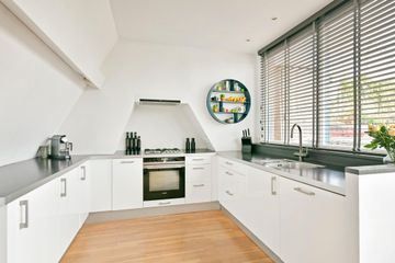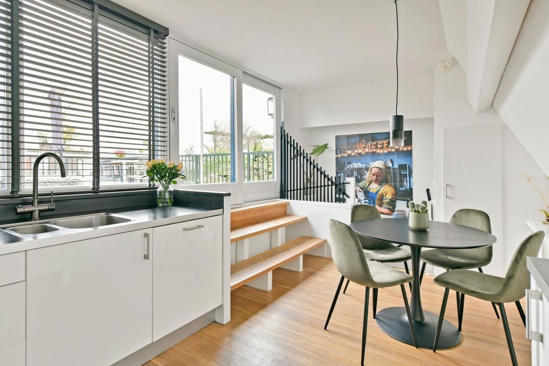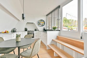 As soon as you enter the fourth floor, you will immediately notice the spacious and modern kitchen. The kitchen is equipped with a 4-burner stove, oven, dishwasher, boiling water tap and plenty of storage space. In the open kitchen there is also room for a cozy dining area, so you have a pleasant combination of cooking and dining. Through the sliding doors to the spacious roof terrace of approximately 36 m². A lovely place for several seats to enjoy the sun.